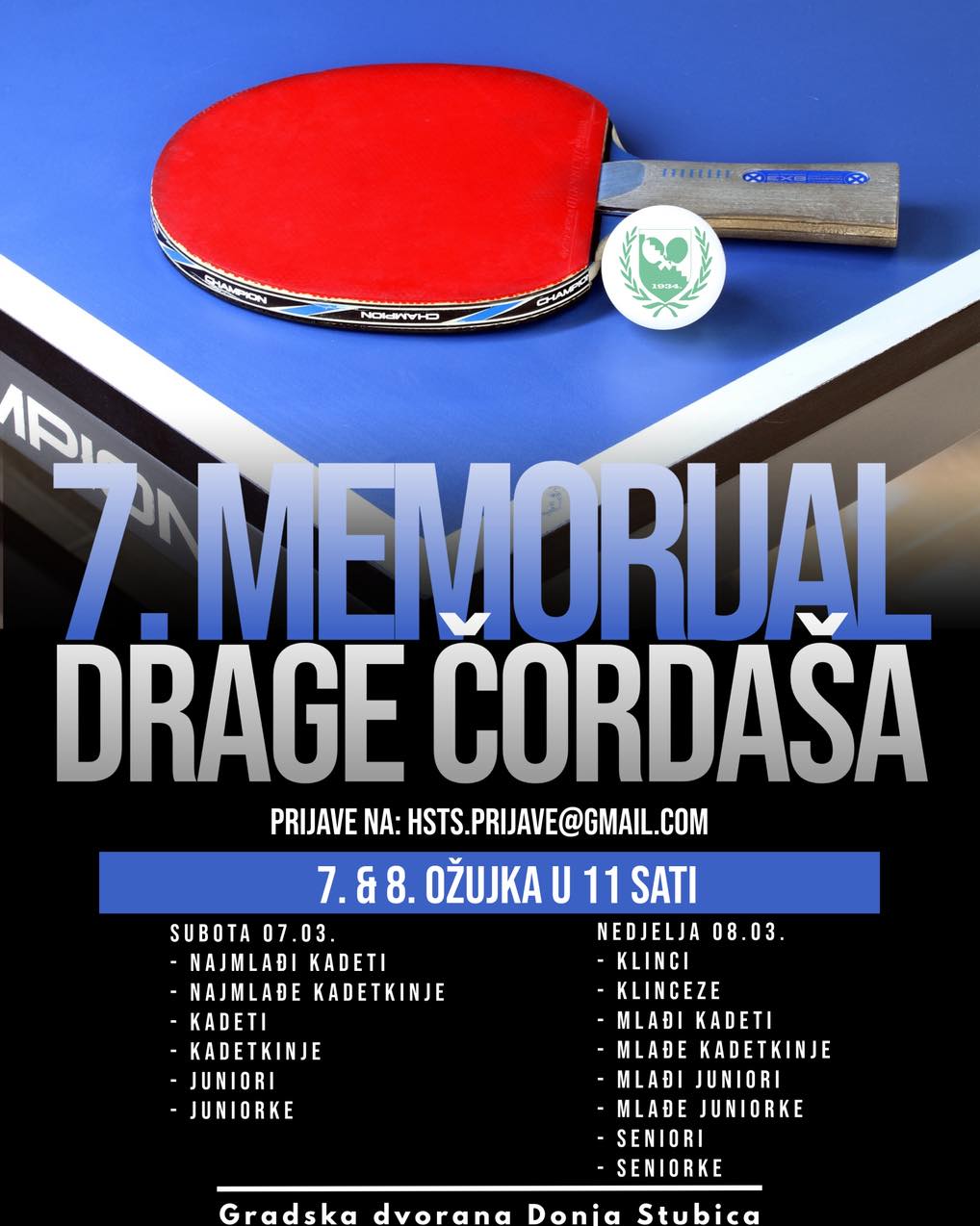 Donja Stubica ponovno je bila središte stolnog tenisa gdje je održan 7. Memorijal Drage Čordaša, tradicionalni turnir koji svake godine okuplja najbolje mlade stolnotenisače iz cijele Hrvatske.